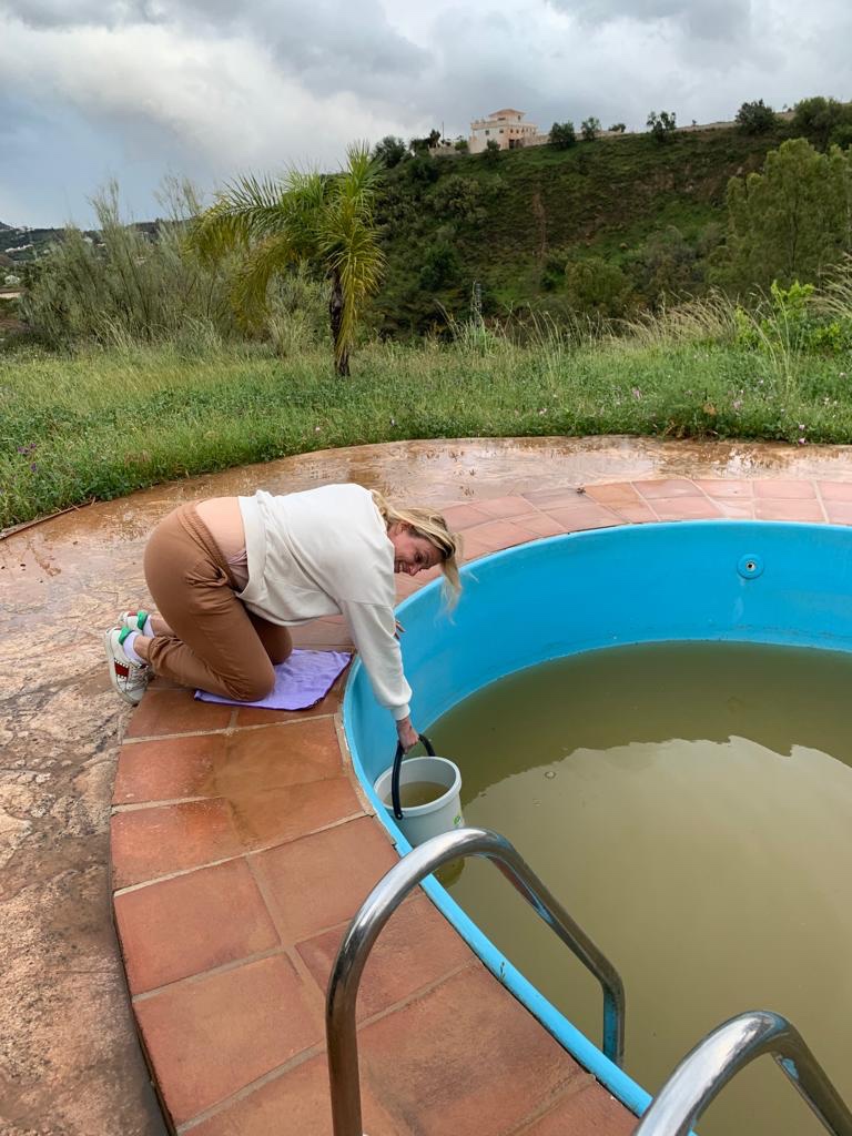 Amber en ik konden niet veel anders doen dan ons aan de planning houden en reden terug naar Malaga om naar de Ikea en supermarkt te gaan. Nieuwe matrassen, beddengoed, vuilniszakken, stofzuiger, emmers, dweil, schoonmaakartikelen. De hele rataplan. Mijn handen jeukten om de boel schoon te maken en we reden snel terug. Maar die avond kwam er geen loodgieter, we zijn immers in Spanje en ik moest me zien te redden met hygiënische schoonmaakdoekjes. Maar, we hadden schone bedden, stroom, te eten, veel fleswater en wijn. Prima!