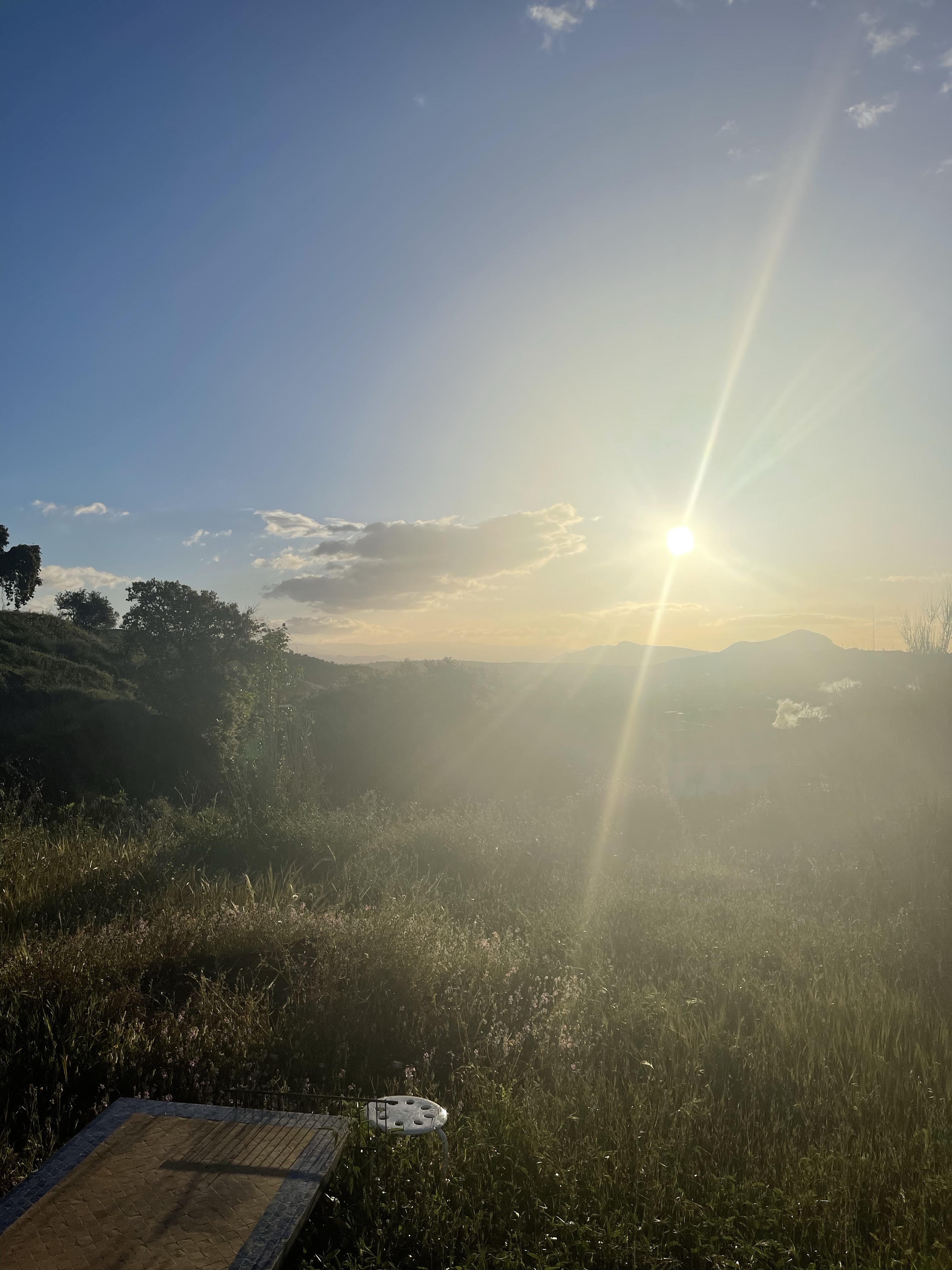 Zaterdagochtend werd ik al vroeg wakker en de wereld zag er heel anders uit. De zon kwam op achter de bergen vandaan, de wind was gaan liggen en ik hoorde niets anders dan de vogels. De bloemen (van het onkruid) en de fruitbomen roken heerlijk fris, meteen voelde ik een bepaalde rust in mezelf opkomen. Hetzelfde gevoel dat Remco en ik hadden toen we voor het eerst op deze mooie plek stonden.