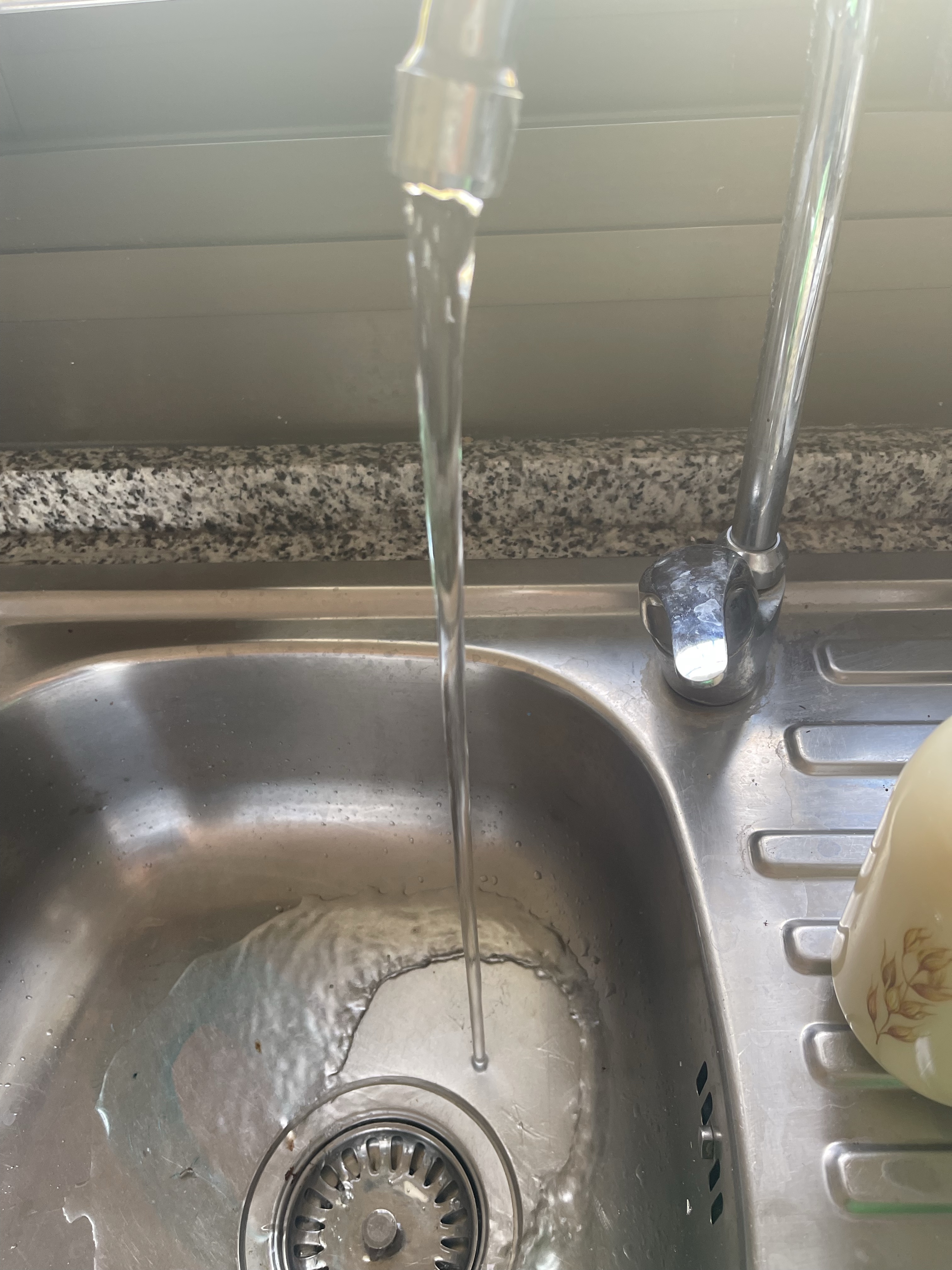 Met de makelaar controleerden we het stroom en het water. De druk was matig terwijl de hoofdkraan, die een stuk verder op de berg ligt, open stond. De meter draaide dus ergens was er iets niet in orde. Er bleek een leiding lek te zijn en ons water stroomde over het bergweggetje.