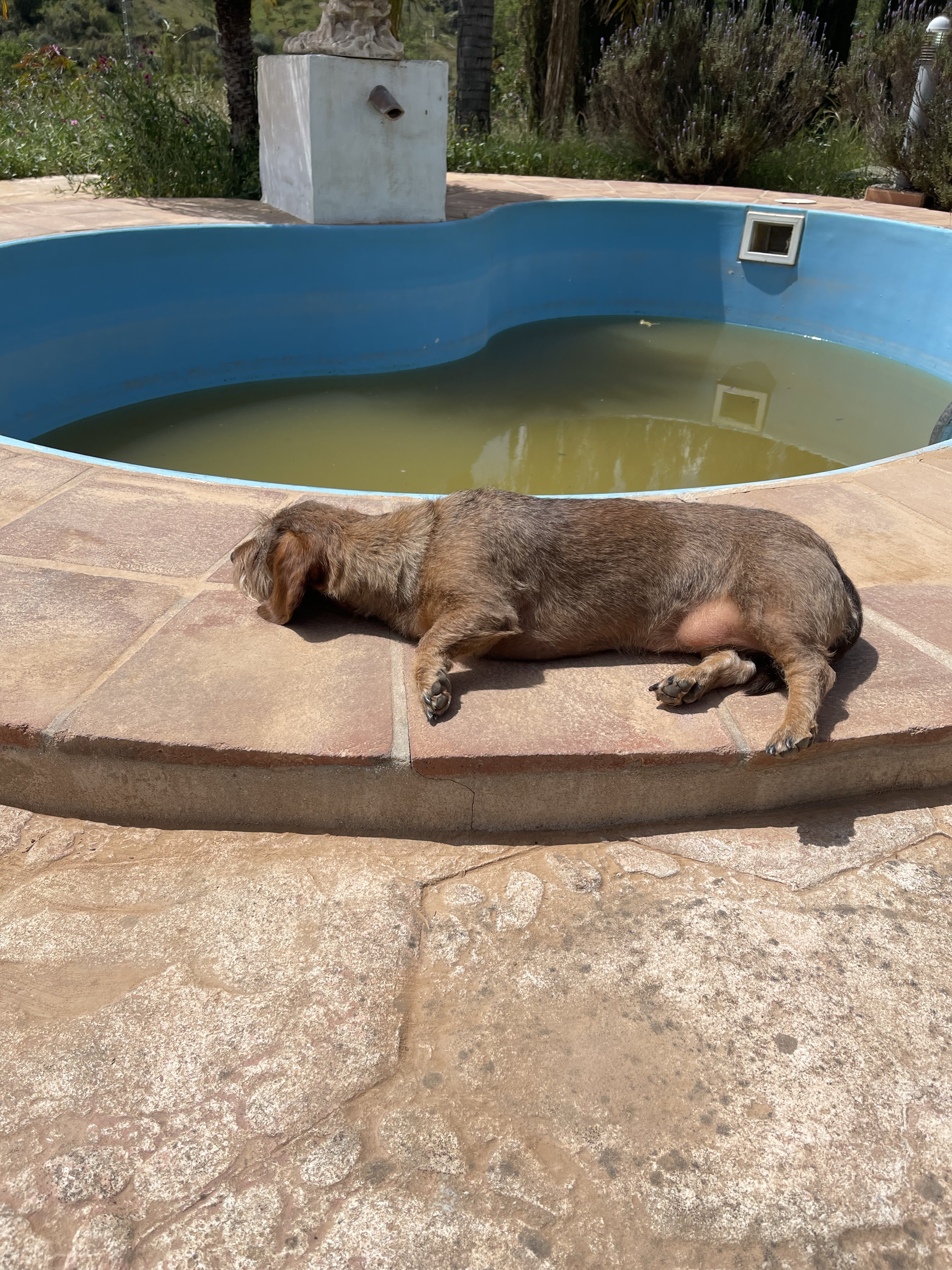 Het zwembad was verre van azuurblauw, maar was gevuld met een combinatie van regenwater en Saharazand. Ook ons oorspronkelijk witte huis was hier slachtoffer van geworden. De Ik Vertrek kijker zou zeggen;
