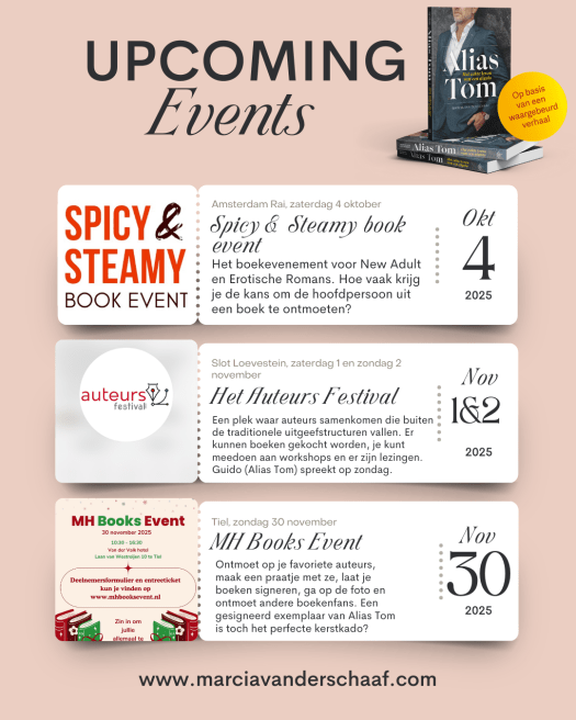 Ben jij van plan om naar een van deze beurzen te gaan? Je kunt vooraf een exemplaar van Alias Tom – Het echte leven van een gigolo bij ons reserveren. Laat hier een bericht achter en wij zorgen ervoor dat het boek voor je klaarligt.